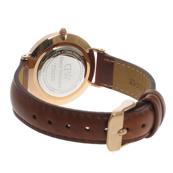 日本製クオーツ・ムーブメント、日常生活用強化防水:3気圧(完全防水ではありません)、カラー:ブラック/ローズゴールド(文字盤)、ブラウン(ベルト)