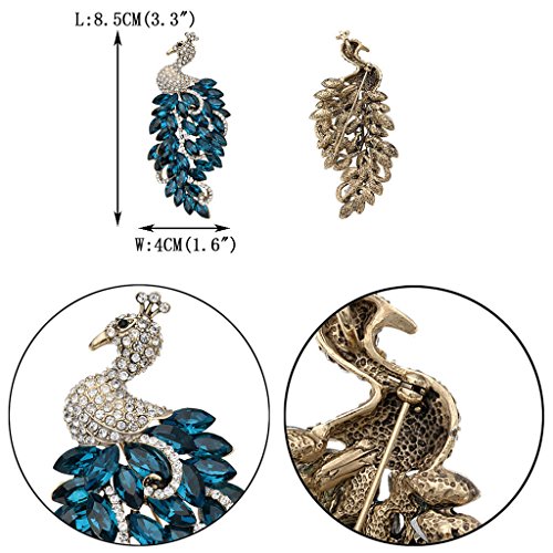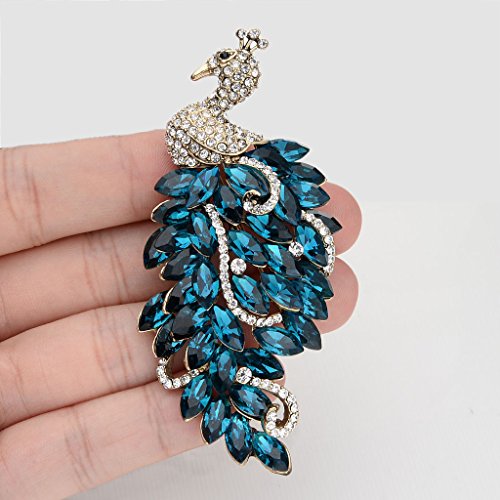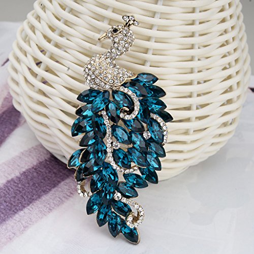 -. Title : EVER FAITH Antiqued-Gold-Tone Austrian Crystal Peacock Pendant Brooch Turquoise Color w/ Clear