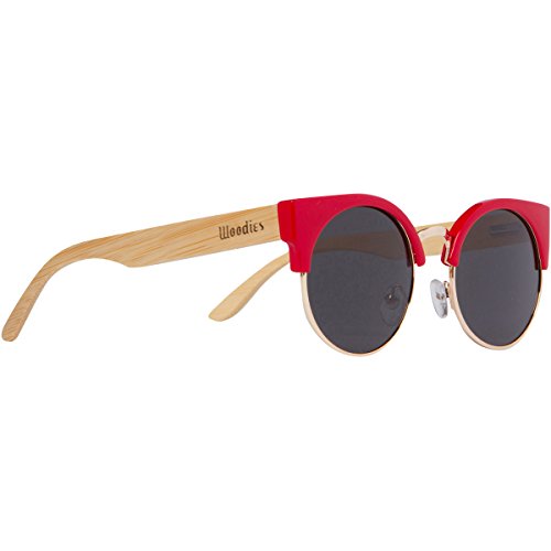 -. Brand : Woodies -. Department : unisex-adult -. Feature : Handmade from REAL Bamboo Wood (50% Lighter than Ray-Bans) / Includes FREE Carrying Case, Lens Cloth, and Wood Guitar Pick / Polarized Lenses Provide 100% UVA/UVB Protection / 30-Day Money Back Guarantee / Proud Member of 1% for the Planet. Woodies donates 1% of revenue to the Surf Rider Foundation Protecting Our Planets Oceans and Beaches -. ProductGroup : Apparel -. ProductTypeName : EYEWEAR -. Size : Medium -. Title : WOODIES Cat-Eye Bamboo Wood Sunglasses