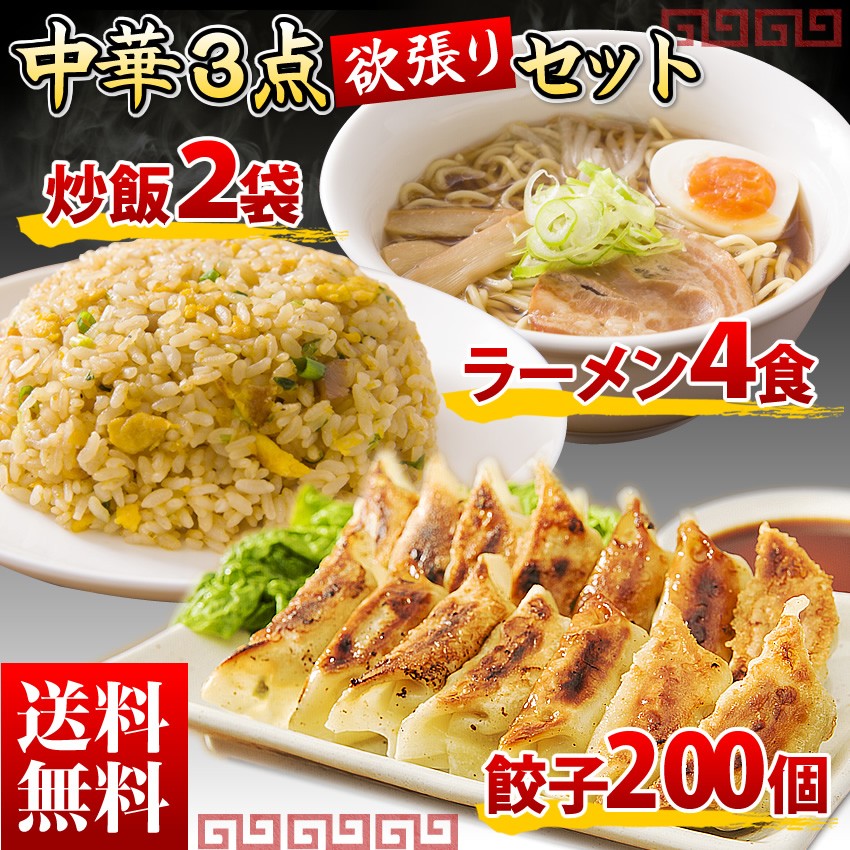 | 名称 | 中華3点欲張りセット(餃子200個+炒飯2袋+ラーメン4食) |