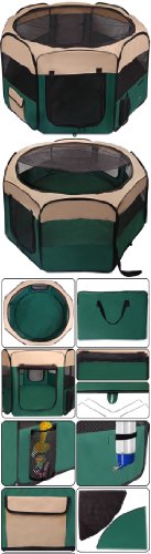 -. Binding : Misc. -. EAN : 9002702100003 -. Feature : Lightweight, portable and fully assembled / Easy to set up and no tools required. / Zippered removable mesh cover / Side pocket to storage the hooks and water bottle. / Each panel is 18" wide and 24" high -. Label : MEGA BRAND -. Manufacturer : MEGA BRAND -. PackageQuantity : 1 -. ProductGroup : Pet Products -. ProductTypeName : PET_SUPPLIES -. Publisher : MEGA BRAND -. Studio : MEGA BRAND -. Title : 45" Octagon Pet Playpen Dog Exercise Pen Green