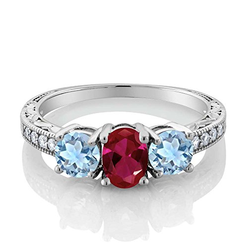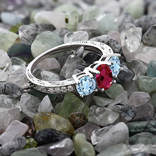 -. Title : 1.82 Ct Oval Red Created Ruby Sky Blue Aquamarine 925 Sterling Silver Ring