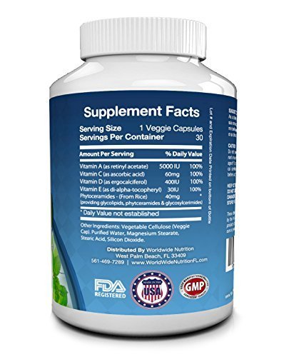 YOU LOSE CERAMIDES AS YOU AGE! Results of Losing Ceramides Include: ? Dry Skin ? Less Supple ? At Risk Skin Tissue ? Decrease in Body's Ability to Regenerate and Heal Skin Worldwide Nutrition's Phytoceramides Our advanced product is an anti-aging formula which provides collagen support, reduces wrinkles, and assists skin care. We have also included Vitamins A, C, D, and E to minimize damages caused by free radicals roaming throughout your body. HYDRATION FROM INSIDE-OUT Worldwide Nutrition's effective Phytoceramides formula hydrates the skin from the inside-out, locking moisture in your body. This results in skin cells binding together to strengthen the skin's protective barrier. PHYTOCERAMIDES HELP WITH: 1. Eczema 2. Atopic Dermatitis 3. Psoriasis 4. AND MUCH MORE! MAJOR BENEFITS OF PHYTOCERAMIDES: ? Skin Regeneration ? Restoring Skin's Protective Barrier ? Hydrates Skin ? Reduces Wrinkles ? Thickens Hair and Nails ? Anti-aging Formula Scroll up and click 'Add to Cart' to have Worldwide Nutrition's Phytoceramides shipped to you today! 0 |