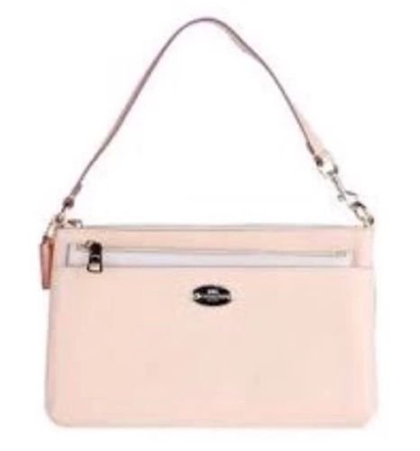 Product Description Coach Cross Grain Pop Up Removable Pouch Wristlet Handbag in a soft and beautiful apricot color with chalk colored pop up pouch. Use as a small shoulder bag or as a wristlet. Classy and stylish - makes a great gift. 0