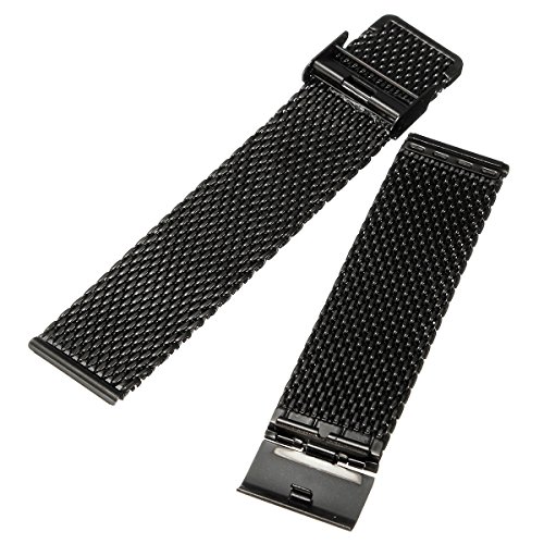 -. Title : Watch Band - SODIAL(R) New 24mm Watch Strap Shark Mesh Band Stainless Double Clasp Steel Bracelet Black