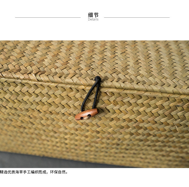 海草编织收纳盒透气防潮储物箱收纳筐环保草编桌面整理箱