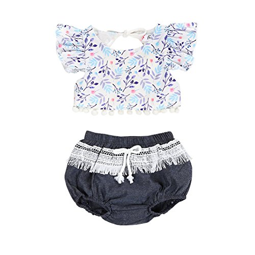 -. Title : Brightup 新生児の赤ちゃんの女の子プリントトップスショーツバックレスドレス2つのパーティーの服セット服、フリルブラウスのビーチドレス+タッセルパンティーショーツ