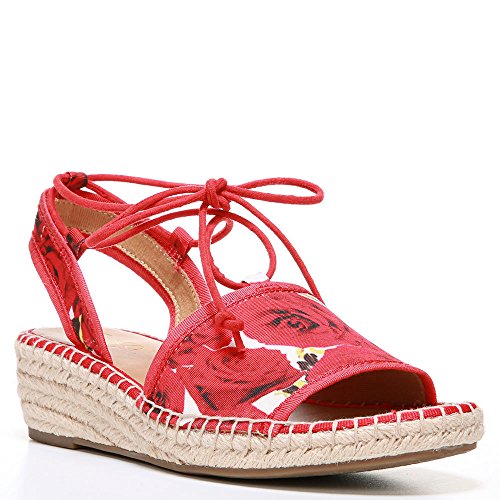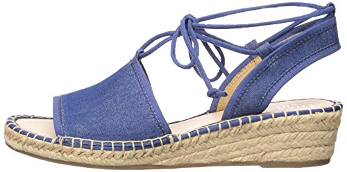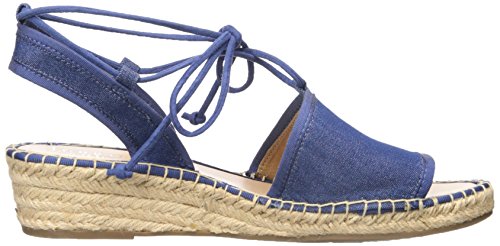 Espadrille wedge sandal with lace up closure; detailed in camel leopard canvas or denim fabric