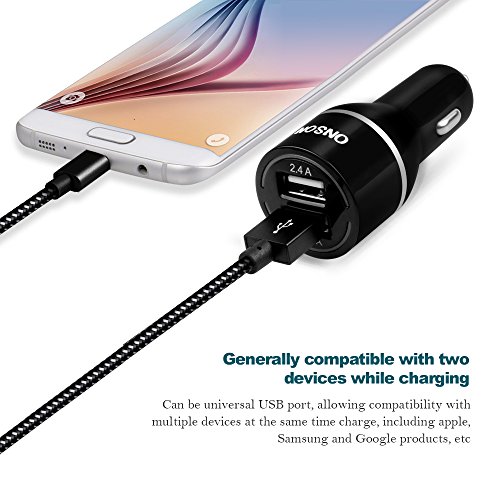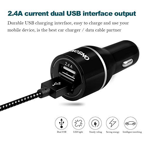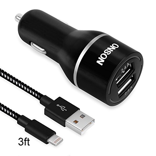 ONSON Car Charger,24W 4.8A Rapid Dual Port USB Car Charger Adapter +3FT Apple Lightning Cable Charging Cord for iPhone 7/7 Plus,6/6S/6 Plus/6S Plus,5S/5,iPad,iPod Nano 7(Black)