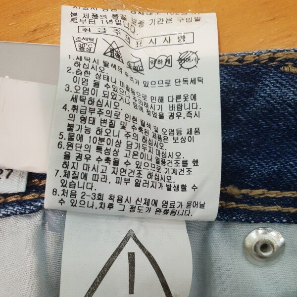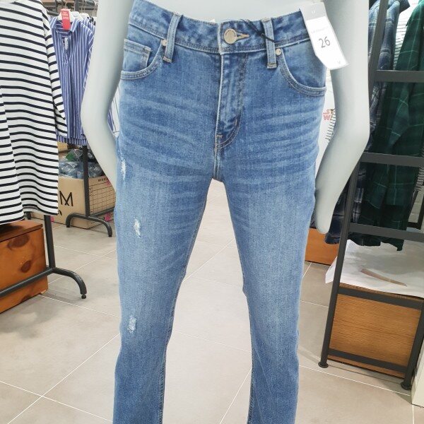 커팅된 기본 진 중간 정도의 칼라감면티와 연출 자유로운 연청진신축성 약간있음