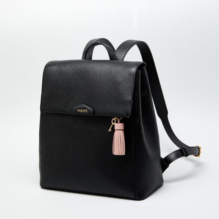 심플한 블랙 가죽 바탕에 부드러운 퍼 장식으로 포인트를 준 백팩입니다.