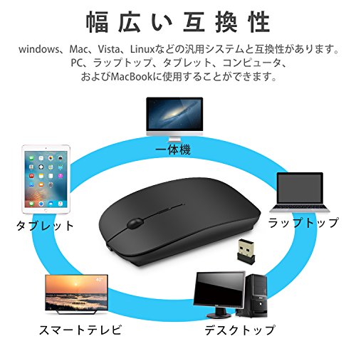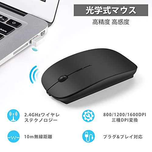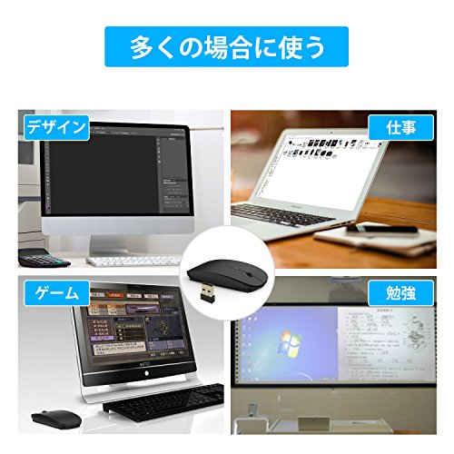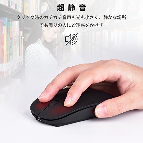 【超静音なワイヤレスマウス】サイレントスイッチを採用して、作業音が気になる場合でも使えます。他人も悩みません。
