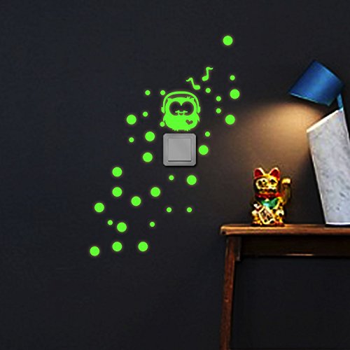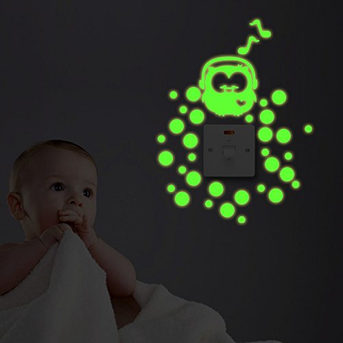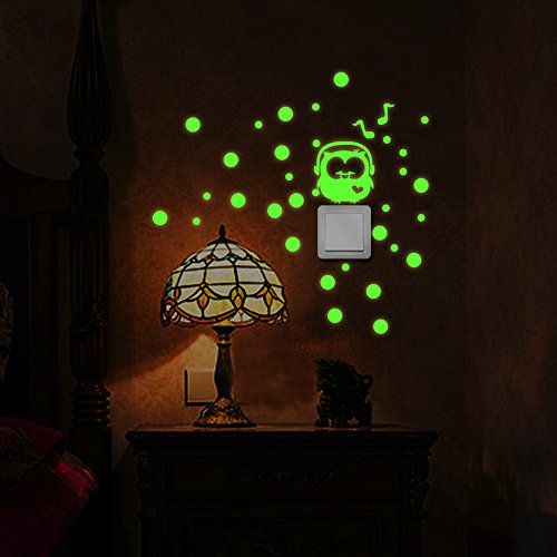 -. Feature : Made of PVC material, safe, odorless, non-toxic, waterproof, mildew proof. / Round Dot fluorescent stickers with 3 different sizes, will glow in the dark. / These stars are designed as round dot shape to imitate the beautiful light point we see on the night sky, very real. / Give your kids a mysterious starry bedroom, a romantic surP.R.Ise for your lovers, or decorate your living room as a fun space. / Easy and quick installation: just peel them off and glue to a clean surface without any adhesive and they are easy to remove, too.