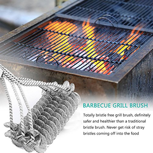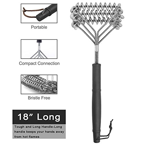 BBQ Grill Brush, iPstyle Portable Outdoor Safety Heavy Duty Grill Cleaning Brush Bristle Free 18"With 100% Rust Resistant Stainless Steel – Safe For Stainless Steel, Ceramic, Iron, Gas (3 Helix Brush)