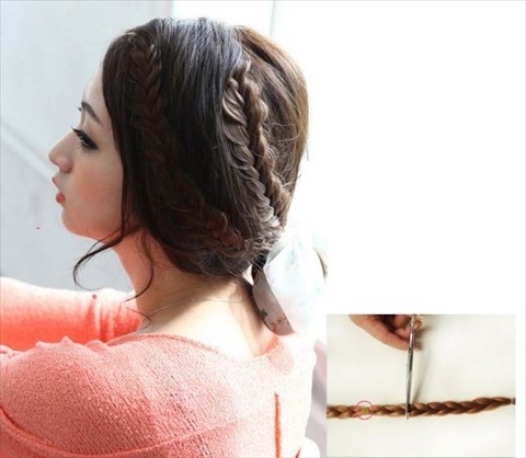 つける前に、三つ編みの毛束をルーズに引き出してからつけるとおしゃれナチュラルな雰囲気になります!!