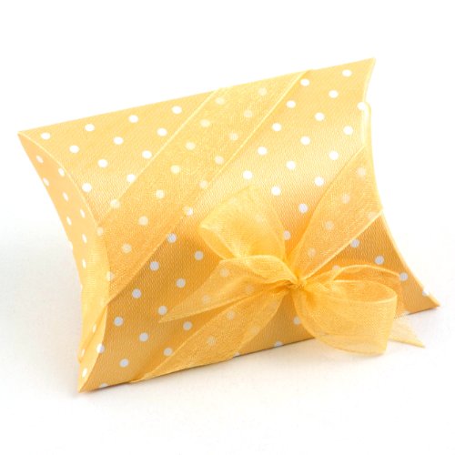 10 Small Spotty Polka Dot Gift Boxes / Pillow Boxes / Wedding Favor Boxes - 70mm X 70mm x 25mm (Yellow) - Decorations Included