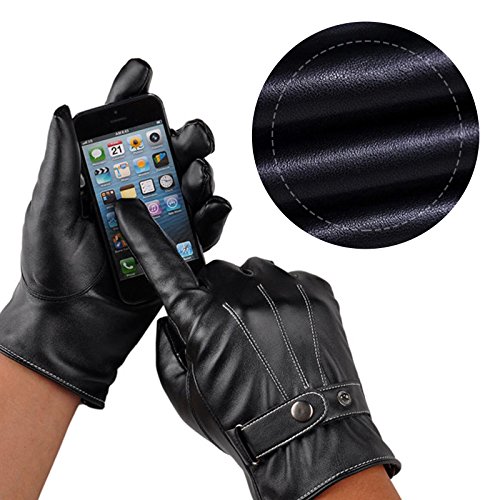 Binding : Apparel Product Description Product Specification - Material:PU leather - Color:Black - Total length:23.5cm / 9.25" - Perimeter of palm:22cm / 8.66" - Middle finger length:9.5cm / 3.74" Product Feature - Mens PU leather gloves. - The PU leather is very soft and flexible, the super soft fleece lining is comfortable and warm, without being bulky. - Touchscreen technology allows you to better operate touchscreen devices. - The leather gloves which is durable and breathable, has excellent flexibility and abrasion resistance. - It won't stain easily and it is easy to clean. - Wear in many different occasions; Can be used as texting, driving, or motorcycle gloves. - Full lined with warm and soft long Fleece, provides you with warmth and comfort in cold winter. It's an excellent choice for Gifts or Your Own Dressing. Buy more for your friends and family. 0