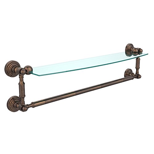 Allied Brass WP-33TB/18-BKM Glass Shelf with Towel Bar, 18-Inch x 5-Inch, Polished Nickel