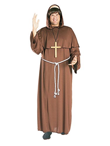 -. Title : Friar Tuck Adult Monk Costume with Bald Wig Brown Medieval Standard Men's Hooded