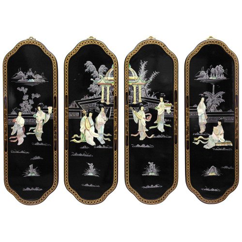 - 4 panels, each measures 36" t by 12" w, ming design set of 4 chinese lacquer wall plaques