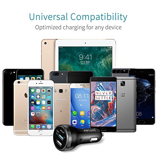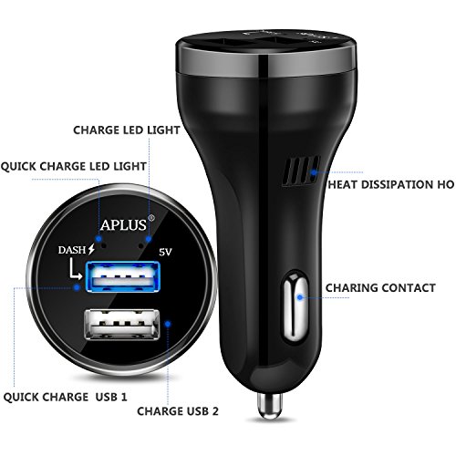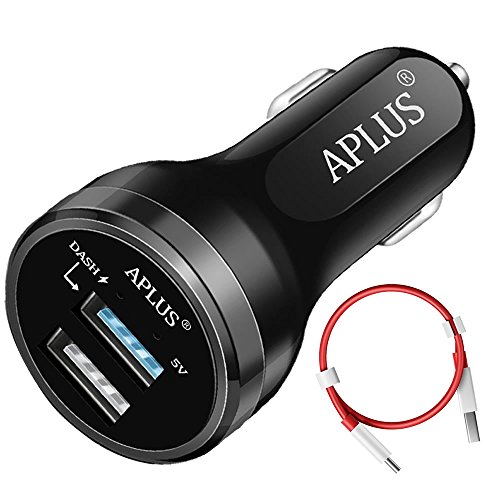 Dash Charge / Super Charge APLUS Dual USB Car Charger for Oneplus 3 / 3T / 5 ,Huawei Mate 9 / P10 / Honor 9 And Compatible With iPhone, Samsung, iPad, HTC, LG, Motorola, Nexus (Black)