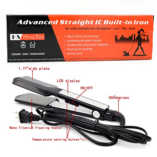 1.77-inch special floating plate hair flat iron. Full contact and snag free when straightening hair. 30 second rapid heat up, a 60 minute auto shut off function