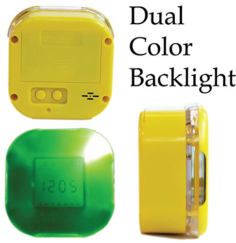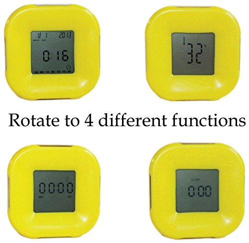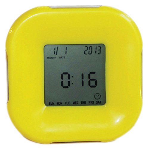Decorate any space with this stylish yellow clock. It is made with a hard bright yellow plastic cover. It has a beautiful LED display that can illuminate with its dual color backlight. Rotate the clock to display 4 different functions. A reliable clock that shows the date and day. Rotate it again and it will show a customizable timer that can count to a maximum of 99 minutes and 59 seconds. Rotate it again and you'll get a programmable alarm. Another rotation will lead into a choice of Celsius and Fahrenheit thermometer. This is no ordinary clock! Buy it while it lasts.Feature