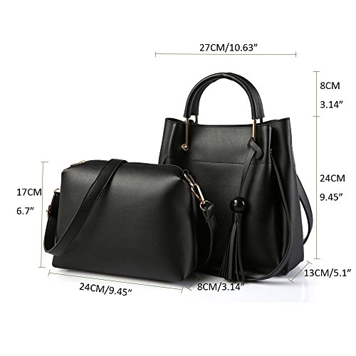 -. Title : Luxury Womens 2Pcs Satchel Hobo Tote Top-Handle Handbag Shoulder Bag Purse Set Female Crossbody Bags PU Leather Tablet Bag With Zipper Pouch Message bag