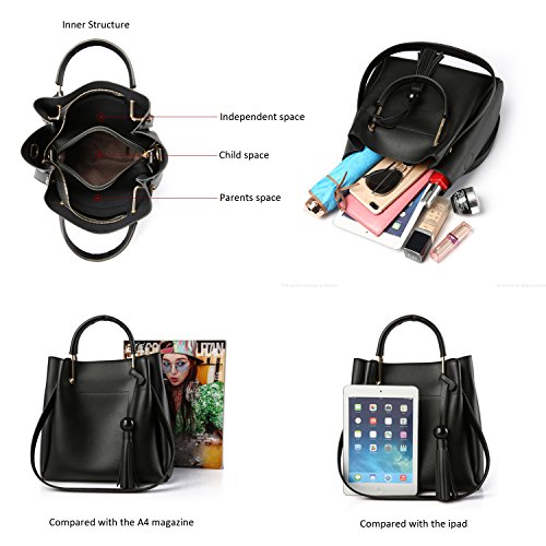 -. Feature : MATERIAL:High-quality handbag purse with golden hardware, Durable and fashionable.Attached an adjustable and removable shoulder strap,it can be used by two bags.Minimum length:27"(67cm),Maximum length:47"(123cm). / FEATURE:The handbag has two handle,one is 3.14"and the longer is 11" height. The message bag can hold a phone, a wallet, a cosmetic, etc. / Multifunctional handbag: 1 * handbag, 1 * Message bag.1 * adjustable strap / SIZE:Shoulder handbag size:10.63" x 9.45" x 5.1"(WxHxD) handle height: 3.14"and 11",Message bag :9.4" x 6.7" x 3.1"(WxHxD). / For the material is PU leather, so it has leather odor is normal. Putting it in well-ventilated areas for few days, the odor will disappear.