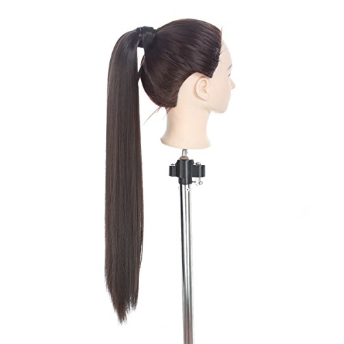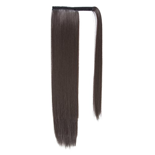 26" Long Ponytail Hair Extension Dark Brown One Piece Hairpiece Synthetic Wrap Around Pony Tail Clip in Hair Extensions for Girl Lady Woman (26" Wrap...