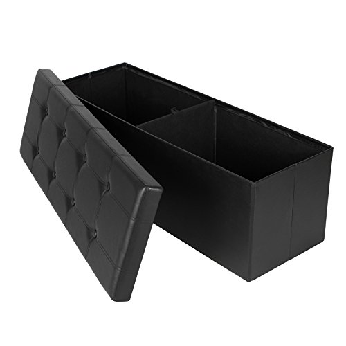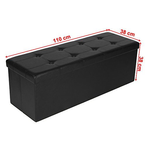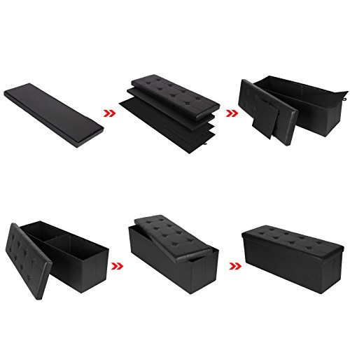 - Title : Songmics Faux Leather Folding Storage Ottoman Large Bench Black Foot Rest Stool Seat Footrest 43.3"x15"x15" ULSF701