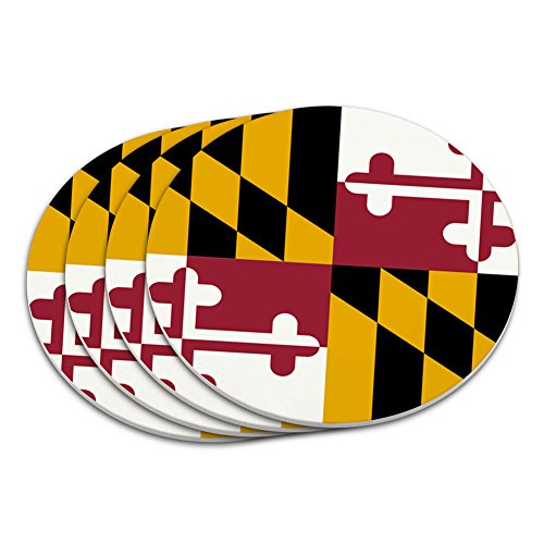 -. Brand : Graphics and More -. Feature : Unique set of coasters / Protect your surfaces from water rings / Made of plastic and cork / Approximately 4" x 4" x 0.2" in size each / Set of 4 -. Label : Graphics and More -. Manufacturer : Graphics and More -. MPN : COASTER.PLASTIC.20020 -. NumberOfItems : 4 -. PackageQuantity : 1 -. PartNumber : COASTER.PLASTIC.20020 -. ProductGroup : Kitchen -. ProductTypeName : KITCHEN -. Publisher : Graphics and More -. Studio : Graphics and More -. Title : Maryland State Flag Coaster Set