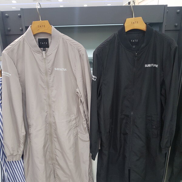 길게나온 항공점퍼청바지나슬랙스에 코디하여세련된스타일을 연출할수있습니다이너로는 기본티셔츠나 셔츠를 입으셔도깔끔한느낌으로 입으실수있습니다남여공용이라커플로도 입으실수있어요^^