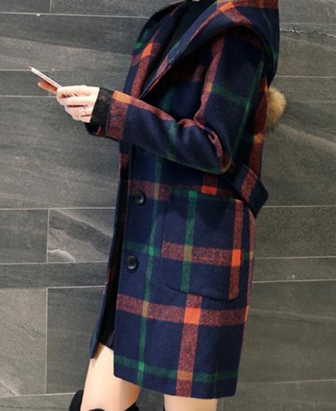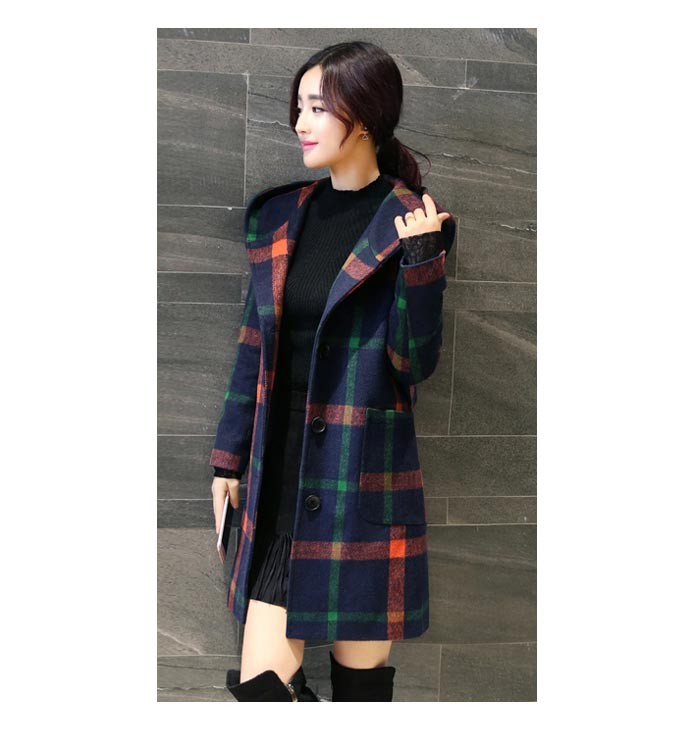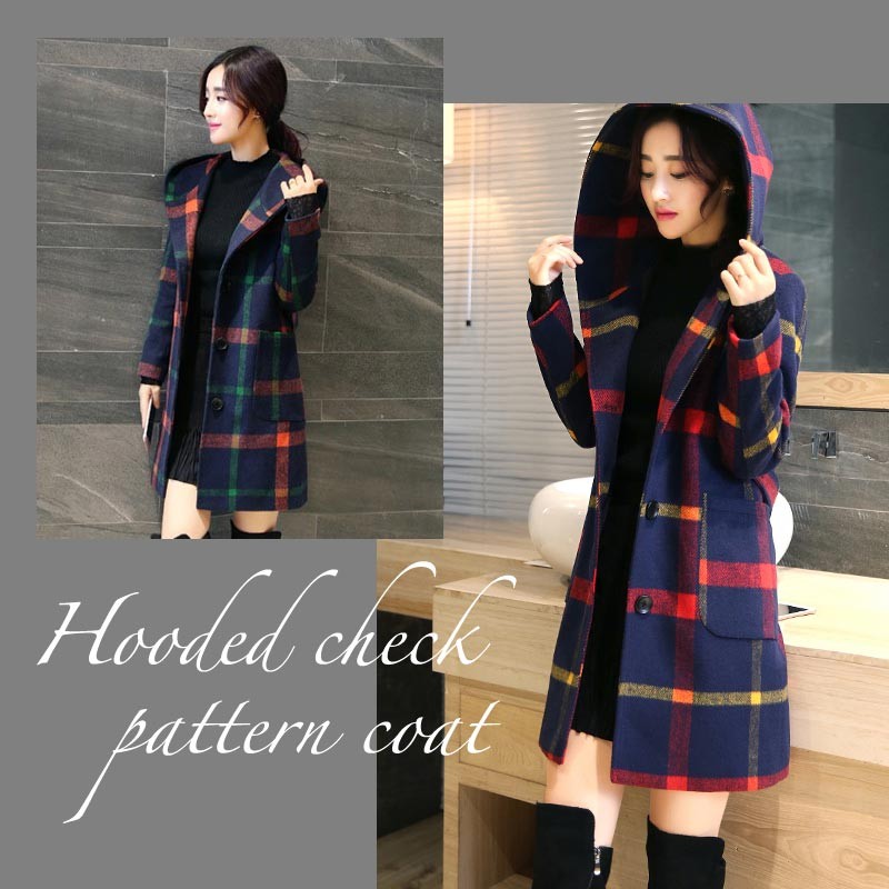 タータンチェックのフード付き・シングルプレトのショート丈コート♪