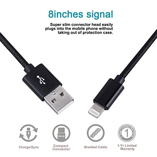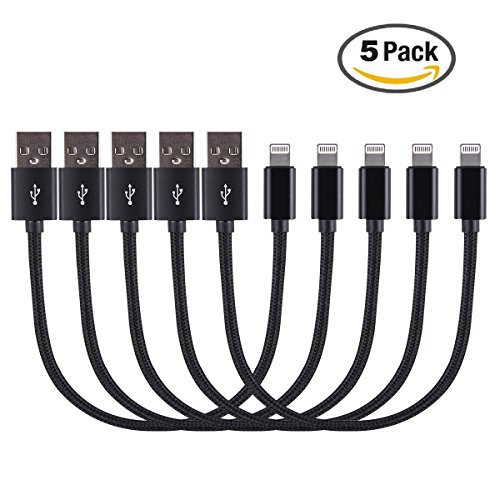 Short Lightning Cables [5 Pack 8 inches] BUENTEK Nylon Braided Lightning to USB Cable Sturdy Charging Cord for iPhone 7, iPhone 6, iPad, iPod and other Apple devices - Black