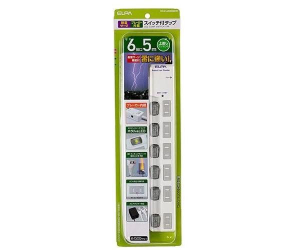 | 仕様 | 定格:AC125V 15A 合計1500Wまで 使用温度範囲:-10度~40度 口数:6個口 屋内専用 |