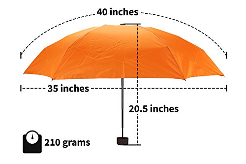 Small Mini Umbrella with Case. Light Compact Design makes it perfect for Travel (Orange)