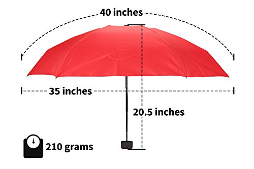 Small Mini Umbrella with Case. Light Compact Design makes it perfect for Travel (Red)