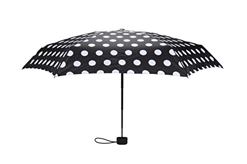 Small Mini Umbrella with Case. Light Compact Design makes it perfect for Travel (Black with White Spots)