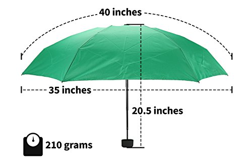 Small Mini Umbrella with Case. Light Compact Design makes it perfect for Travel (Green)