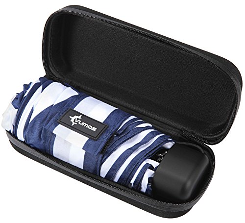 Small Mini Umbrella with Case. Light Compact Design makes it perfect for Travel (Navy and White Stripes)