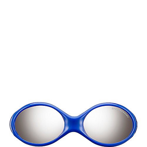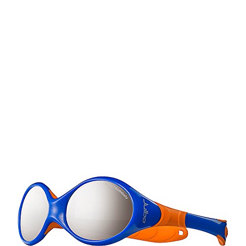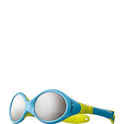 Studio : Julbo Publisher : Julbo Product Description Looping 2 sunglasses are specifically designed for toddlers about 12-24 months of age and are reversible, so they cannot be put on incorrectly. Short flexible temples allow for a comfortable fit on a wide range of head shapes. Hinge-less design prevents caught hair, the pinching of delicate fingers, and adds superior durability. 0