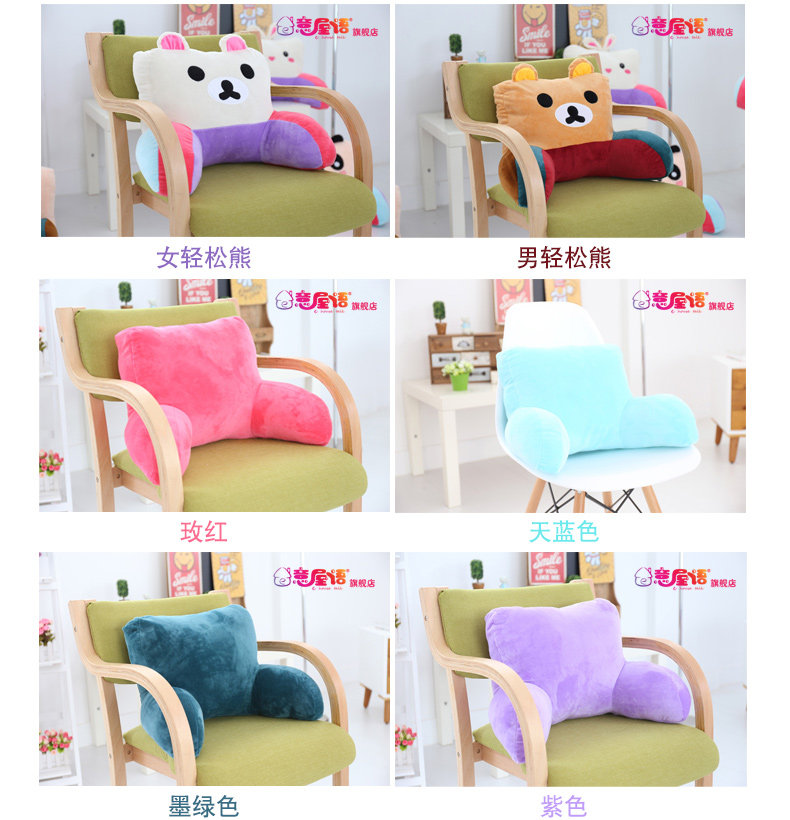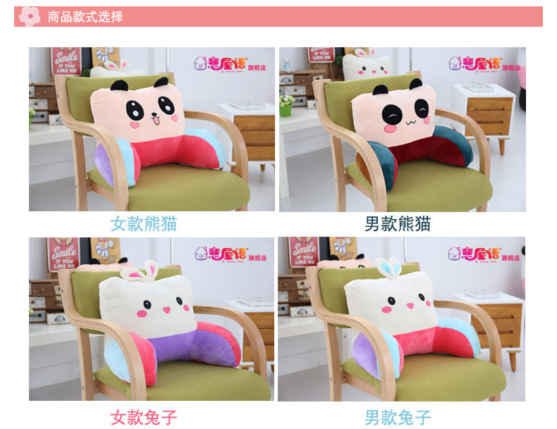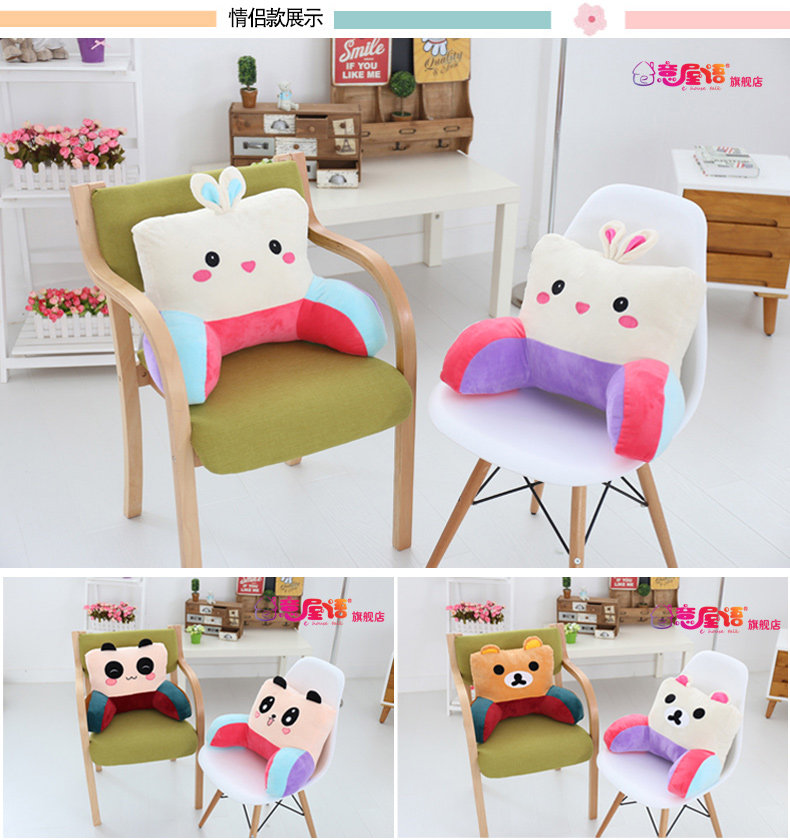 靠垫办公室卡通可爱腰枕大号椅子护腰靠枕靠背垫床头抱枕夏