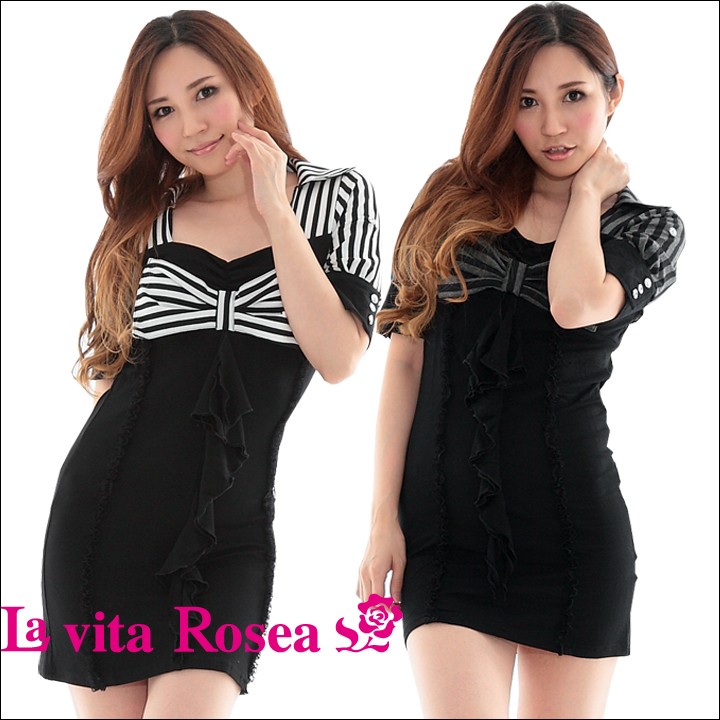 カラー付スクエアネックボーダー切替ワンピース(JL) 大きいサイズ 春 セクシー レディース ギャル服 ギャル 大人 13号 15号 17号 19号 LL 2L 3L 4L 5L 6L 6L