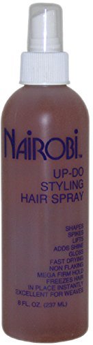 Studio : PerfumeWorldWide, Inc. Drop Ship Publisher : PerfumeWorldWide, Inc. Drop Ship Binding : Misc. Product Description For those hairdos that you want to last and last, use Nairobi Up-Do. It allows hairstylists control with mega firm hold. Nairobi Up-Do adds fullness, volume and extra support for today's exciting hairstyles. Use Nairobi Up-Do to spike, mold and finger sha 0