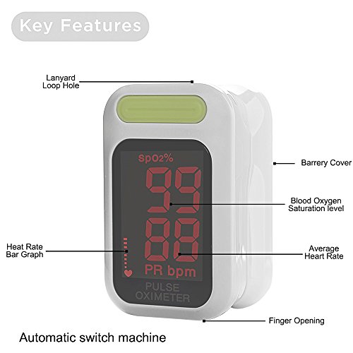 The Pulse Oximeter can be used to measure Hemoglobin Saturation and pulse rate through a finger, and indicate the pulse intensity by the bar display. .