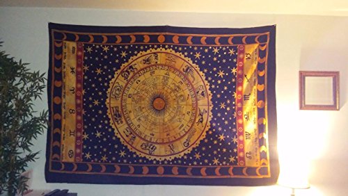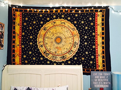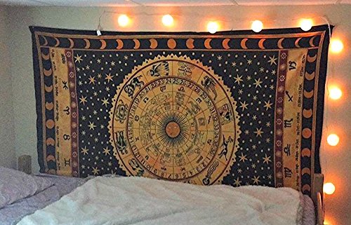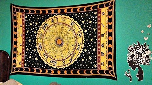 Black Zodiac Tapestry Wall hanging Horoscope Tapestry Dorm room tapestries Hippie tapestry Indian Astrology Trippy psychedelic tapestry Wall Hanging by Jaipur Handloom
