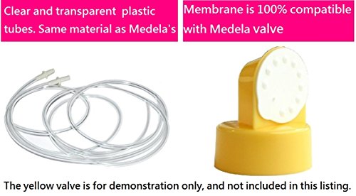 This product contains 6 membranes, and 2 tubings for Medela's Pump In Style Advanced breastpump released after July 2006. Medela has released several versions of Pump In Style. Please refer to product photos to verify your face plate before making the purchase. The tubing in this listing has one soft end and one pale yellow adaptor. It is 42 inches in length. Smooth, and clear plastic tubing. Membranes are made from high quality silicon. They stay flat on valves, and will not become distorted after uses. They perform the same suction power as Medela's. 100% compatible with Medela valves, and Nenesupply valves. FDA registered Medical Device. All parts are carefully designed and strictly tested. Membranes are specially-engineered so they can last longer. All parts are BPA free. In retail package sealed by the manufacturer. Comply with EU Commission Regulation (EU) No 10/2011 for plastic materials that intended to come into contact with food. Every batch is tested for quality and safety.Feature