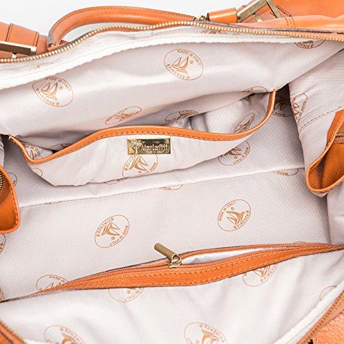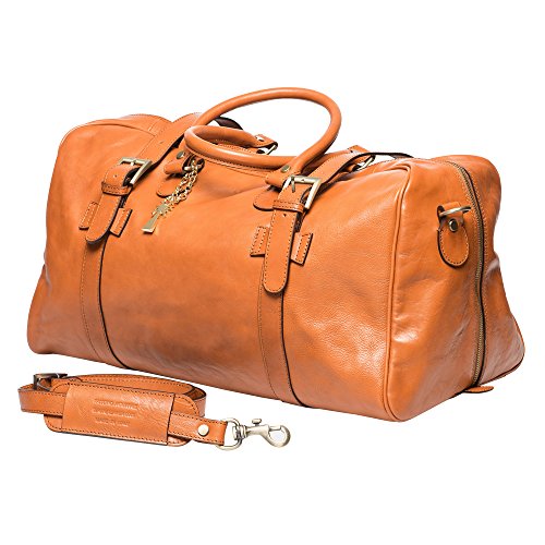 Product Description The Daniel leather travel bag by Marlafiji can be used as an overnight bag or travel bag, beautiful Italian leather make this a very luxurious bag to travel or take to the gym it has a spacious main compartment ,inner side pocket, fully lined with sturdy leather handles this bag will last for a life time and the older it becomes the better it looks. - Dimensions L 51 cm x H 31 cm x W 20 cm - 100% Genuine Leather - Gold metal hardware - Fully lined - One main compartment - Long adjustable shoulder straps - Zip up closure - Includes dust bag - Made in Italy 0