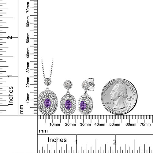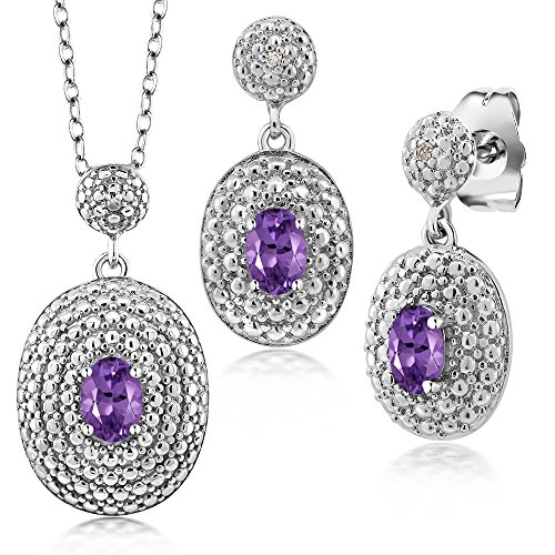 -. Binding : Jewelry -. Brand : Gem Stone King -. Color : Purple and White -. Department : womens -. Feature : SIMPLY SOPHISTICATED - This delicate pendant will immediately put you in the spot light. Crafted with high quality stones this pendant is the perfect accessory for any ensemble on any occasion. Our complimentary 18" Chain makes sure that this piece is stunning and all around flattering. / UNIQUELY DESIGNED- With simplicity in mind this pendant is the perfect item for gift givers who want to show they care. Perfect for birthdays, weddings, mother day or just those moments when you want to get something for that "Someone Special". / INCLUDES- Complimentary 18" Chain so that its ready for gift giving upon arrival / GORGEOUS- and Sparkly these unique earrings are perfect for any outfit! Pair them with date night and work week looks you cannot go wrong! Beautifully crafted these earrings are the perfect gift for any occasion and make perfect stocking stuffers for the holidays. They're truly a fashion staple and belong in every jewelry collection. / UNIQUE- The design of these earrings will ensure that you stand out effortlessly. Gift these beautiful earrings to yourself or someone you love. Made in the USA Gem Stone King products are always made with the highest quality elements and standards -. Model : VIV-0139-OV-AM-PUR-DI-W-SPBR -. NumberOfItems : 1 -. PackageQuantity : 1 -. ProductGroup : Jewelry -. ProductTypeName : FINENECKLACEBRACELETANKLET -. Title : 1.07 Ct Oval Purple Amethyst and Diamond Rhodium Plated Pendant Earrings Set